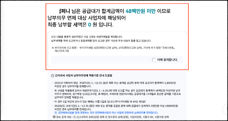 7. 저는 48백만 원 미만이라 면제 대상자에 해당되어 최종 납부할 세액은 0원이었습니다.