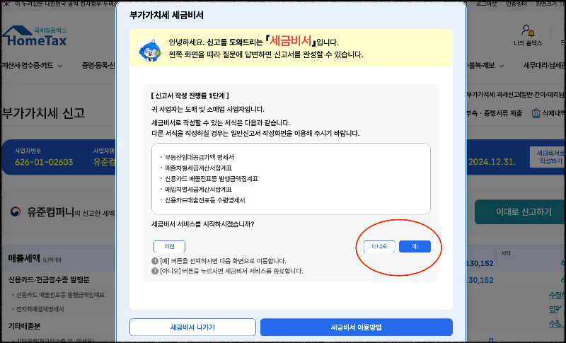 세금비서 서비스를 통한 간이과세자 부가가치세 세금신고 방법입니다.
