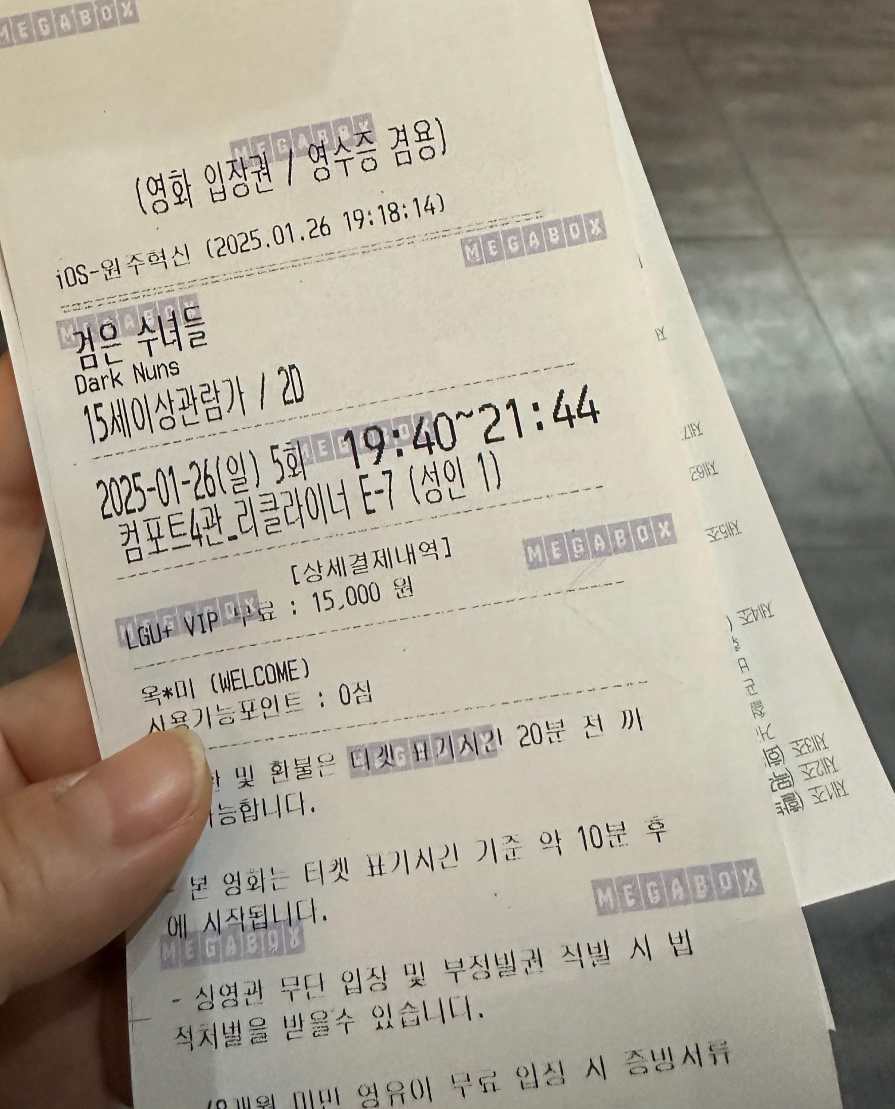 검은 사제들 팬으로 10번 넘게 본 것 같습니다. 장재현 감독 영화들을 다 좋아하지만 검은 사제들, 사바하, 파묘를 너무 재미있게 보았어요. 검은 수녀들은 검은 사제들과 같은 세계관을 공유하고 있지만 장재현 감독의 영화는 아닙니다. 그래도 궁금해서 원주에 볼일이 있어 겸사 겸사 원주 메가박스에서 관람하고 왔습니다.