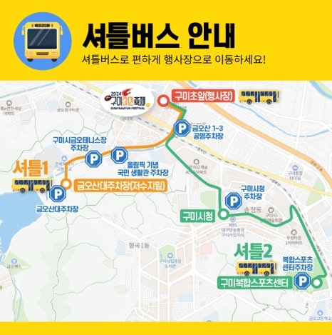 주차장 및 셔틀 : 구미역후면주차장(무료), 무료 셔틀버스 운행(하단참조)
