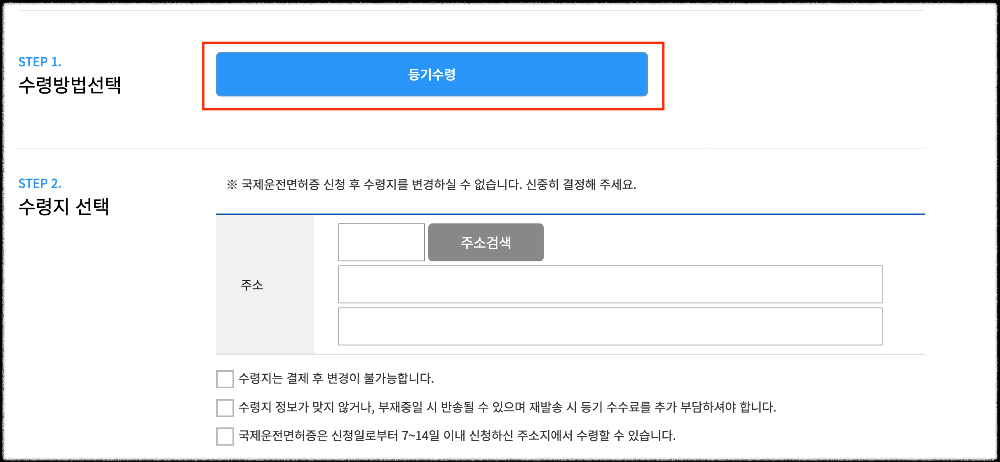 온라인 국제운전면허 수령은 7일에서 14일까지 소요될 수 있으니 급한 분들은 오프라인 신청이 더 빠를 수 있습니다.