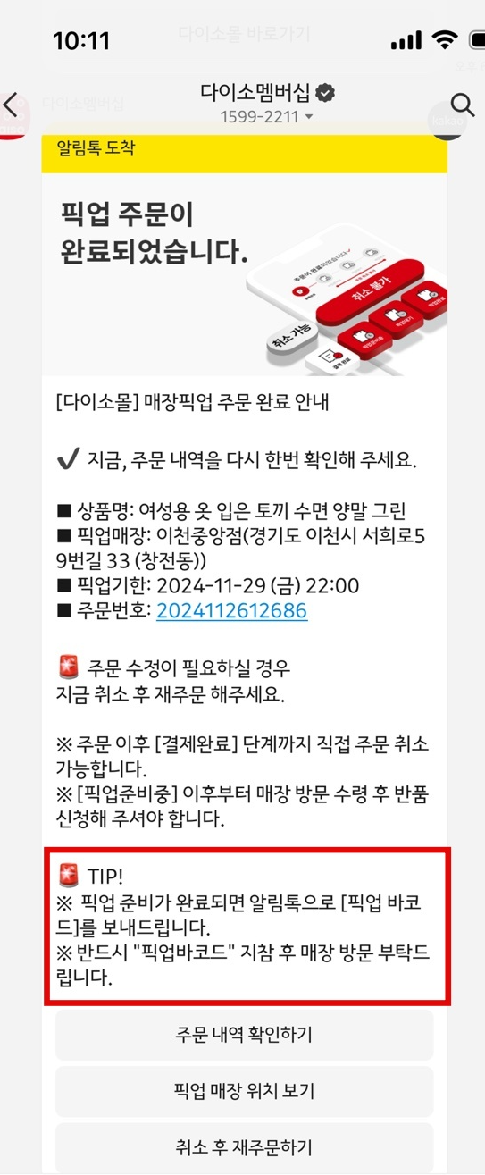 알림톡 내용을 확인하고 QR코드를 직원에게 보여주기만 하면 됩니다.