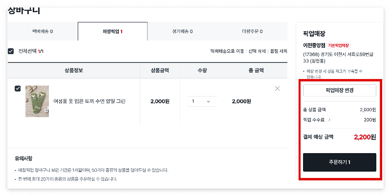 여기가 알아두어야 할 점은 일부 매장은 제외될 수 있으며 택배 전용 상품은 해당 서비스 이용이 불가능합니다.