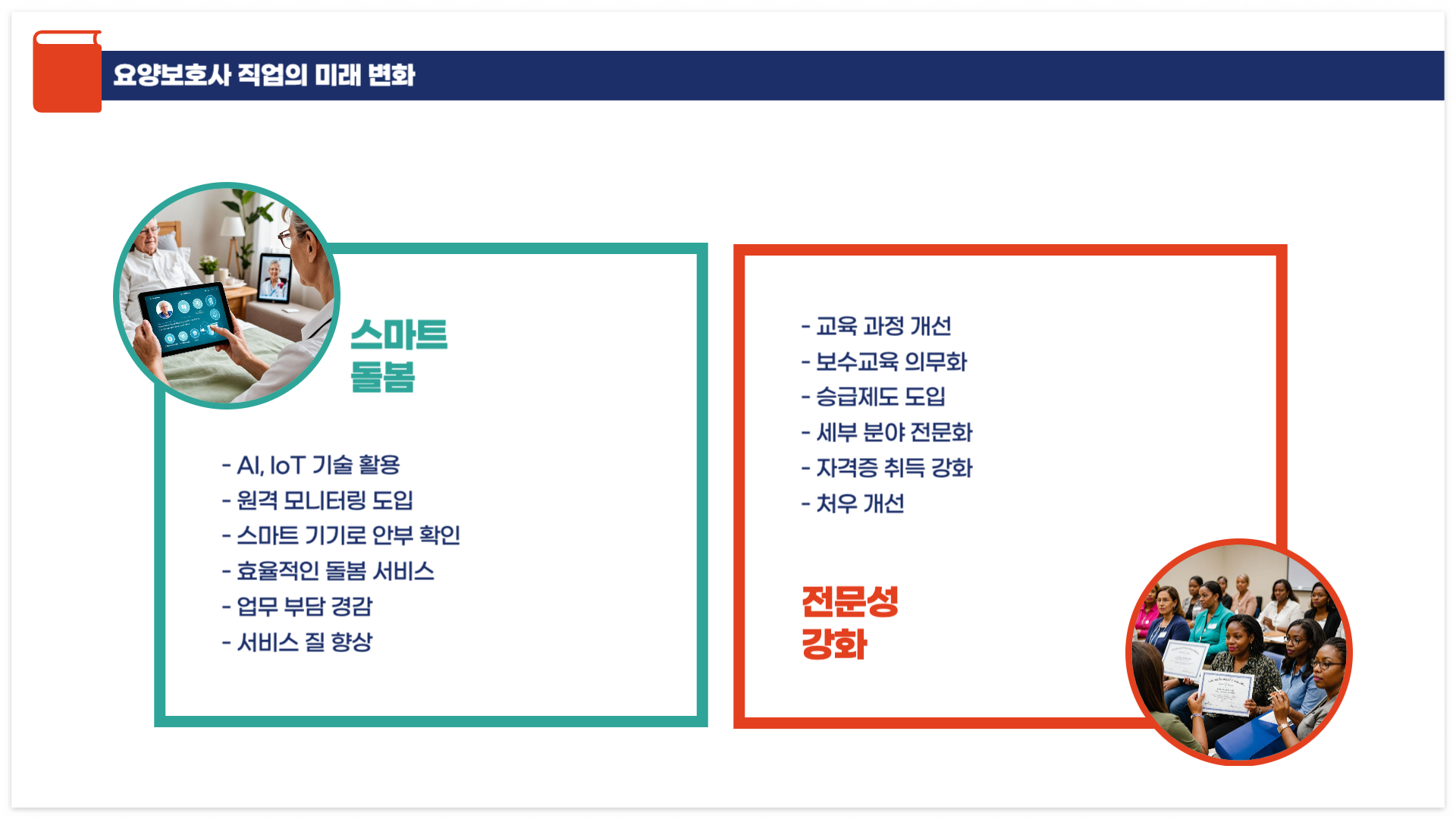 ✔ 전문 요양 인력 확대 → 요양보호사 업무의 세분화 및 전문성 강화