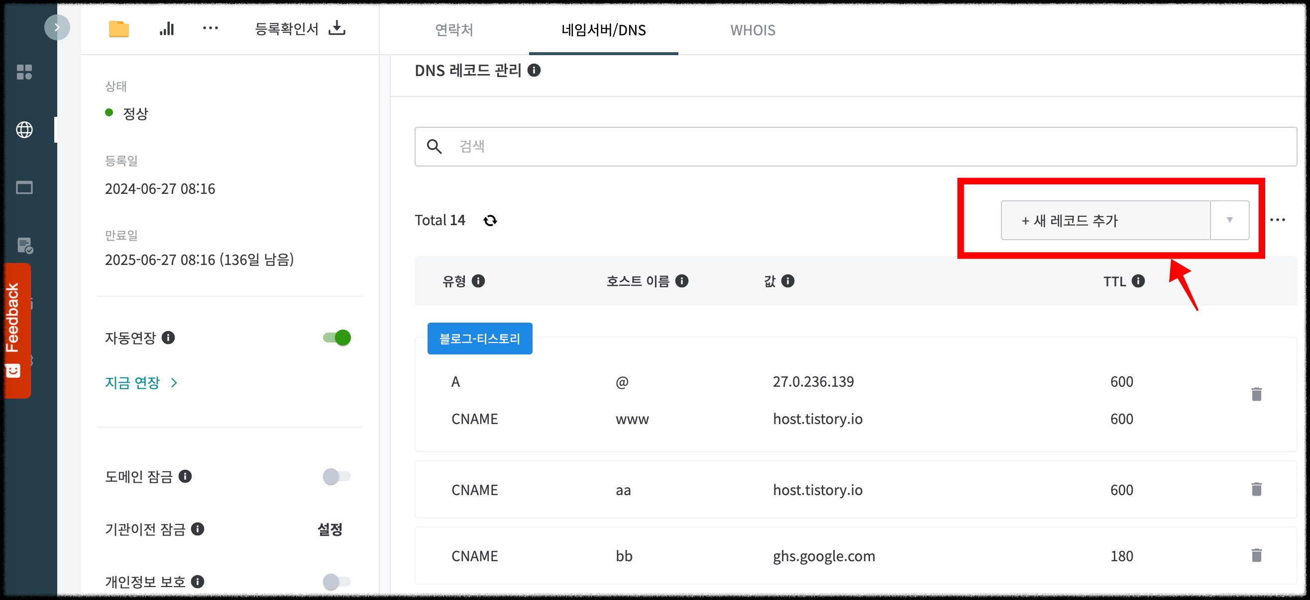 티스토리 호스팅케이알과 도메인 연결하기